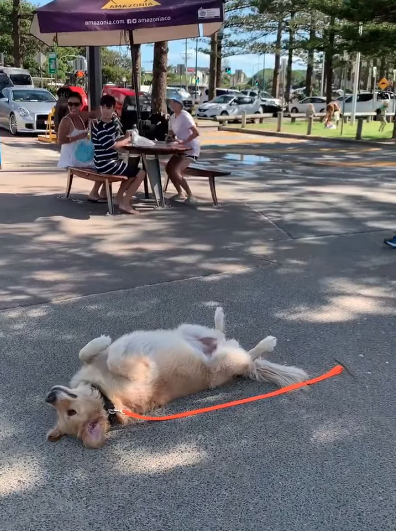 The other day, Nicola Booth was out for a stroll in Queensland, Australia, when she ran across a man standing over a pup lying belly-up on the path. The dog, whose name is apparently Vincent, appeared totally lifeless. But why?